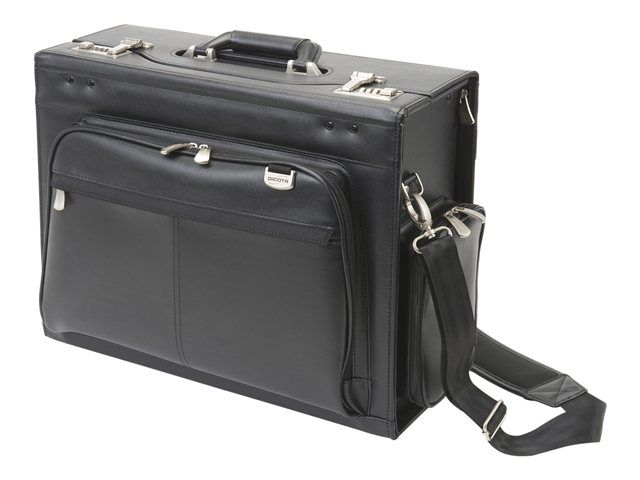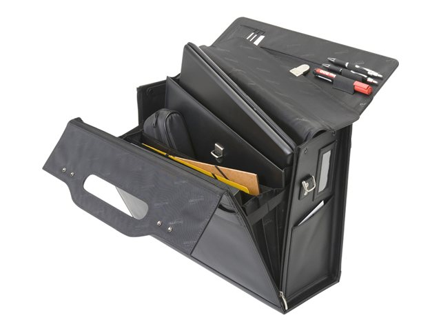 AeroCase de DICOTA est le compagnon idéal de vos déplacements pour transporter votre ordinateur portable, votre imprimante ou votre projecteur et leurs accessoires et vos documents indispensables. Proposée en simili-cuir particulièrement solide, cette mallette possède une poignée intégrée et un cadre renforcé. Le compartiment pour ordinateur portable rembourré est également recouvert sur le dessus pour protéger les fiches de l'appareil. L'imprimante, le projecteur ou un classeur de format A4 trouvent place dans le grand compartiment principal et des soufflets en accordéon peuvent accueillir tous vos documents. La pochette zippée verrouillable permet de ranger vos accessoires. Une pochette séparée est prévue pour les câbles. Les serrures à combinaison à chiffres offrent une sécurité supplémentaire, très appréciable en déplacement.