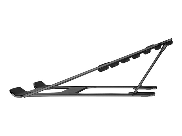 La conception légère et compacte rend le support idéal pour l'emporter partout où vous le souhaitez. La configuration ouverte assure une bonne ventilation de l'ordinateur portable et les patins en silicone antidérapants ainsi que la butée de rebord de sécurité assurent un positionnement solide.