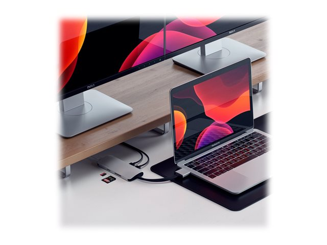 Description du produit Satechi ST-TCDMMAS DUAL MULTIMEDIA ADAPTER - station d'accueil - USB-C - 2 x HDMI - 1GbE Type de Produit Station d'accueil Interface de station d'accueil USB-C Interfaces vidéo 2 x HDMI Dimensions (LxPxH) 12.5 cm x 4.93 cm x 1.91 cm Poids 102 g Couleur Argent Réseaux Gigabit Ethernet Garantie du fabricant 1 an de garantie -