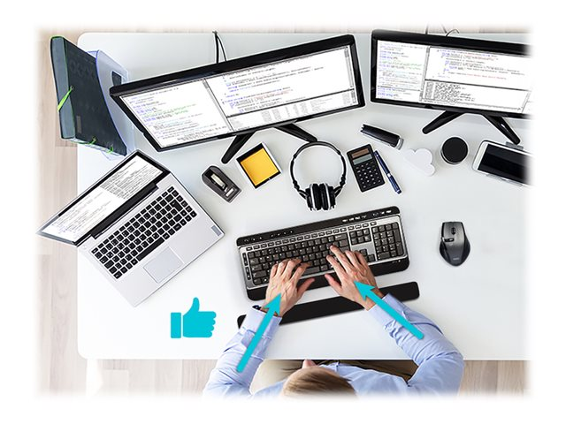 Le repose-poignet ergonomique PORT Connect, conçu pour toutes les tailles de clavier, est fabriqué dans un matériau souple, lisse et respirant, assurant un confort durable. Son coussin en gel réduit les douleurs du bras et du poignet en les maintenant dans une position ergonomique. Son design ergonomique et compact est pensé pour optimiser l'espace de travail et sa base antidérapante à haute adhérence assure un positionnement stable.