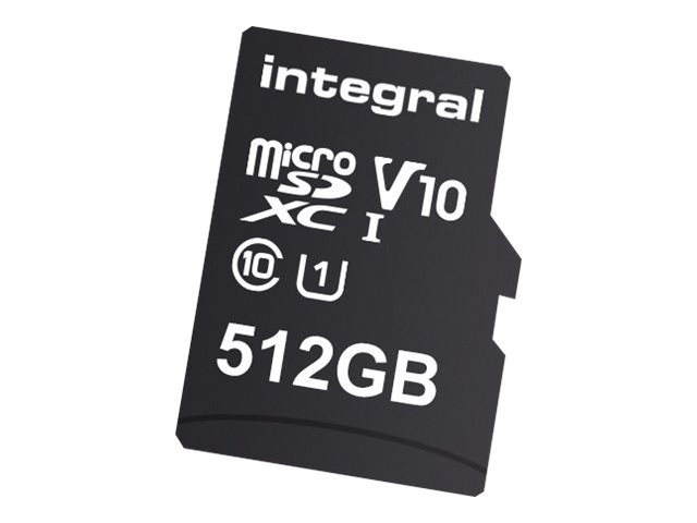 Description du produit Integral - carte mémoire flash - 512 Go - microSDXC UHS-I Type du Produit Carte mémoire flash Format Carte mémoire microSDXC UHS-I Capacité de stockage 512 Go Indice de vitesse Video Class V10 / UHS-I Class 1 / Class10 Adaptateur mémoire fourni Adaptateur microSDXC vers SD Système d'exploitation requis Apple MacOS X, Microsoft Windows, Android Garantie du fabricant Garantie de 5 ans -