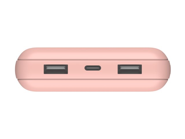 Chargez jusqu'à 3 appareils en même temps avec la Power Bank 20K compacte et puissante de Belkin. Elle dispose de 2 ports USB-A et d'un port USB-C, délivrant au total jusqu'à 15 W lorsque les 3 ports sont utilisés.