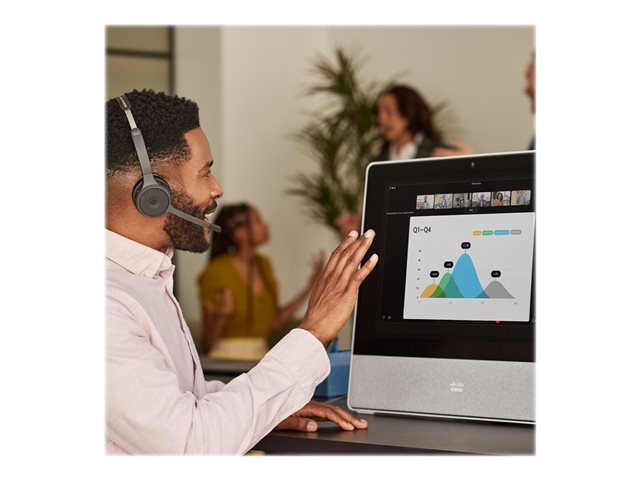 Les fonctionnalités des casques Cisco 720 améliorent votre expérience d'écoute en intégrant tout ce dont vous avez besoin dans un casque professionnel, au bureau comme à la maison. Le design léger et supra-auriculaire offre des options d'oreillettes en cuir simples ou doubles, ainsi qu'un bandeau rembourré qui assure un confort tout au long de la journée. La technologie sans fil Bluetooth permet de connecter facilement jusqu'à deux périphériques simultanément et de recevoir des notifications intra-auriculaires, de trouver l'emplacement optimal du microphone grâce à son bras pivotant à 276 degrés avec basculement pour couper le son, et de participer à des réunions en toute simplicité grâce au tout nouveau bouton unique de participation aux réunions Webex. Ce casque offre des intégrations poussées avec les applications Cisco et certains téléphones IP et périphériquesCisco, pour une expérience d'utilisation intuitive et une gestion IT intelligente des casques dans l'ensemble de l'écosystème Cisco.