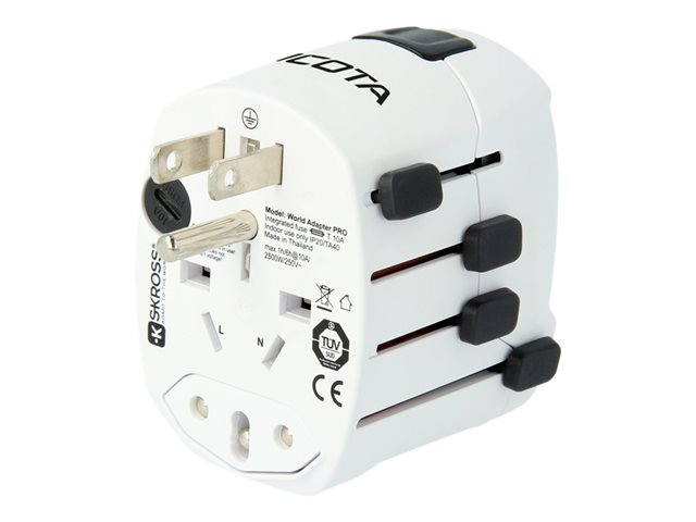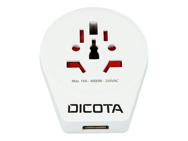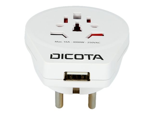 Le Dicota World Adapter Pro & USB vous permet d'utiliser des appareils à prise 2 et 3 pôles en profitant de la puissance maximale disponible (jusqu'à 2500W), et en même temps charger dispositifs à interface USB à pleine vitesse. Plus rien ne vous empêchera de brancher vos appareils à New York, Sydney, Rome ou à Londres.