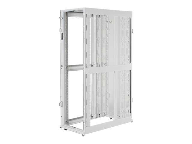 Armoires informatiques riches en fonctionnalités optimisées pour l'architecture en rangées InfraStruxure, la gestion des câbles, la distribution d'alimentation ainsi qu'une circulation d'air optimale.