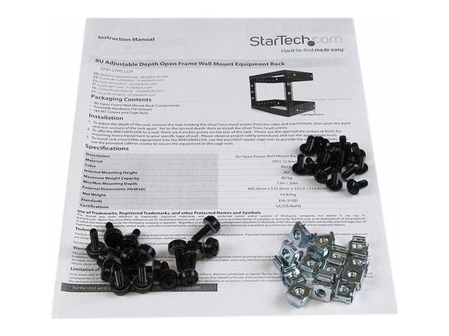 Rack Réseau Mural 8U à 2 Montants, Rack Serveur 19" à Cadre Ouvert, Profondeur 12", Rack de Données Mural pour IT/AV/Panneau de Patch - Écrou et Vis de Cage Inclus (RK812WALLO).