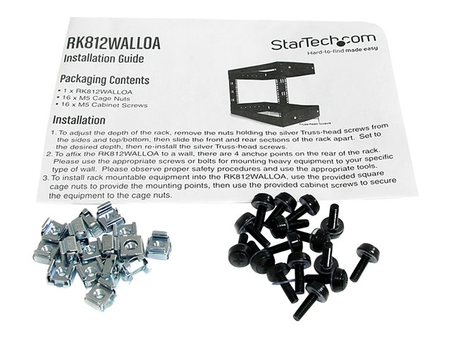 Rack Réseau Mural 8U à 2 Montants, Rack Serveur 19" à Cadre Ouvert, Profondeur Ajustable, Rack de Données Mural pour IT/AV - Écrous et Vis de Fixation Inclus (RK812WALLOA).