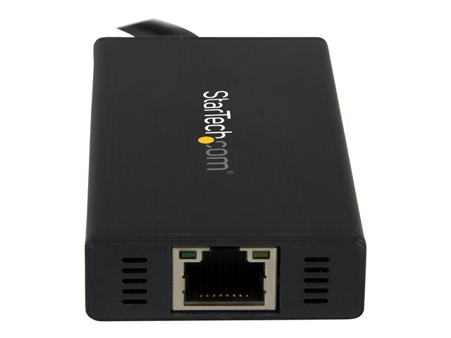 Hub USB 3.0 portable à 3 ports avec câble intégré - 5Gbps - Concentrateur USB 3.0 plus Gigabit Ethernet - Aluminium (ST3300GU3B).