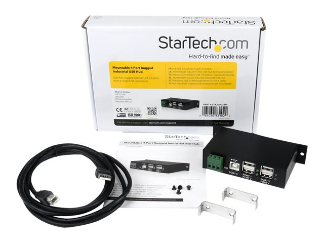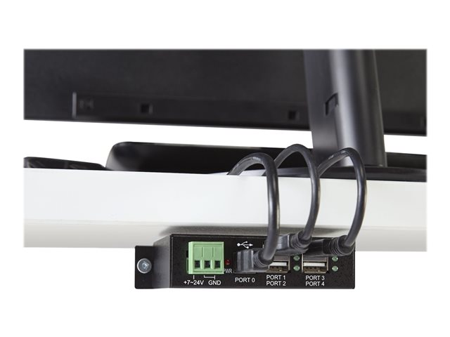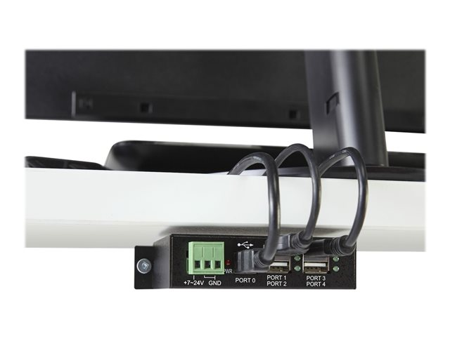 4 Port Rugged Industrial USB 2.0 Hub - Concentrateur (hub) - 4 x USB 2.0 - Montage sur rail DIN - Tension CC - pour P/N: ITB20D3250, MSDREADU2OTG, USB2HAB15, USB2HAB30AC, USB2HAB50AC, USB2HABM1, USB2HABM6RA