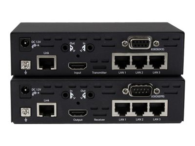 Avec ce kit d'extendeur unique, bénéficiez de la technologie HDBaseT avec HDMI, IR, RS232, Ethernet et alimentation pour une solution de bout en bout complète. Offrant une plus grande polyvalence que les extendeurs ou les câbles HDMI traditionnels utilisés seuls, le HDBaseT constitue une solution de choix pour tous les intégrateurs et concepteurs de système. L'extension infrarouge vous permet d'utiliser votre écran et un périphérique source par infrarouge, comme un lecteur Blu-ray ou un boîtier décodeur de téléviseur, à l'une ou l'autre extrémité de l'extension. Grâce à la commande RS232, vous pourrez brancher un périphérique série E/S à votre écran, ce qui est parfait pour ajouter une interface tactile série à votre écran distant pour vos présentations d'affichage numérique interactif. Le hub Ethernet à 6 ports intégré vous permet de brancher cinq périphériques IP à votre réseau (trois à distance, deux locaux).