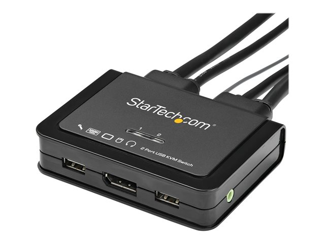 Commutateur KVM USB DP 1.2 UHD avec Câbles 1,2 m Integrés & Audio - Alimenté par Bus - Commutation à Distance 1,5 m avec Bouton (SV211DPUA4K) - Commutateur écran-clavier-souris/audio - 2 x KVM / audio - de bureau
