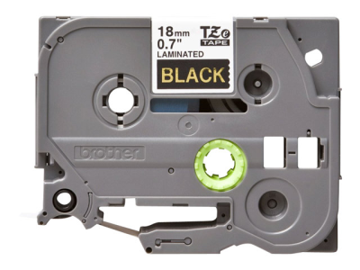 Brother TZe-344 - Adhésif standard - or sur noir - rouleau (1,8 cm x 8 m) 1 cassette(s) ruban laminé - pour Brother PT-D600; P-Touch PT-1880, D450, D800, E550, E800, P900, P950; P-Touch EDGE PT-P750 TZE344