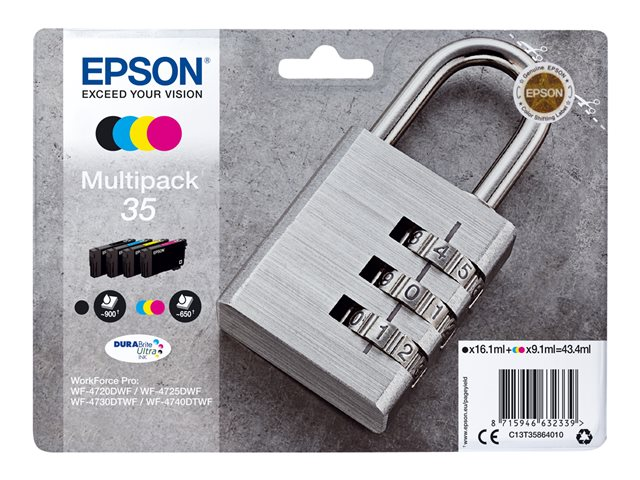 Epson 35 Multipack - Pack de 4 - noir, jaune, cyan, magenta - original - blister - cartouche d'encre - pour WorkForce Pro WF-4720, WF-4720DWF, WF-4725DWF, WF-4730, WF-4730DTWF, WF-4740, WF-4740DTWF