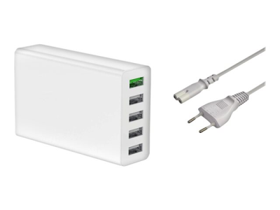 DLH - Adaptateur secteur - 50 Watt - Quick Charge 3.0 - 5 connecteurs de sortie (USB) - blanc DY-AU4940