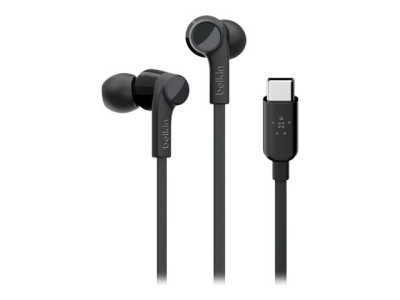 Belkin ROCKSTAR - Écouteurs avec micro - intra-auriculaire - filaire - USB-C - isolation acoustique - noir