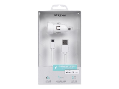 BIGBEN Connected - Adaptateur d'alimentation pour voiture - 2.4 A - 2 connecteurs de sortie (USB) - blanc