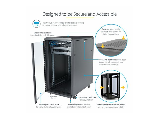 StarTech.com 18U 19" Server Rack Cabinet, 4 Post Adjustable Depth (6-32")Locking Knock Down Network/Computer Equipment Enclosure, Mobile with Glass Door & Casters, HP ProLiant ThinkServer - Data Rack Enclosure (RK1836BKF) - Rack armoire - 4 montants - sur le sol - noir - 18U - 19" RK1836BKF