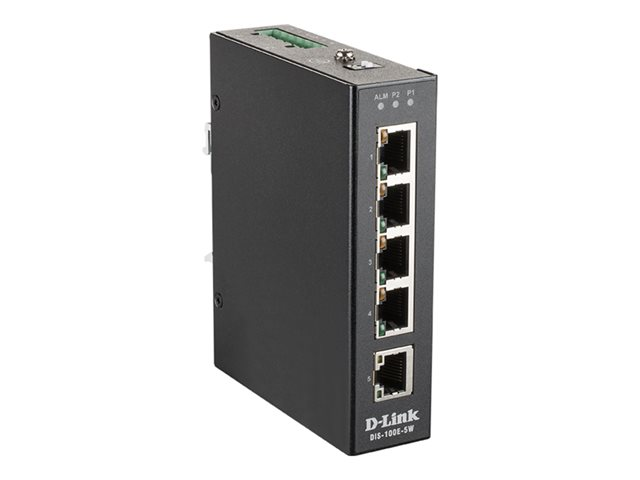 D-Link DIS 100E-5W - Commutateur - non géré - 5 x 10/100 - Montage sur rail DIN, fixation murale - Tension CC