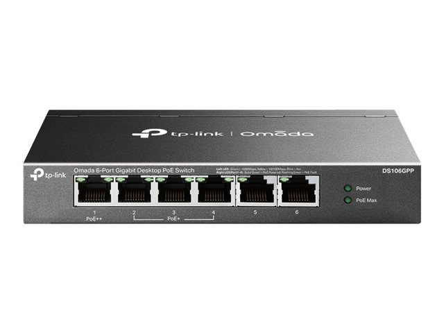 TP-Link Omada DS106GPP V1.6 - Commutateur - non géré - 3 x 10/100/1000 (PoE+) + 1 x 10/100/1000 (PoE++) + 2 x 10/100/1000 - de bureau, fixation murale - PoE++ (64 W)